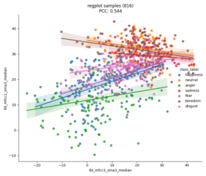 regplot = [['lld_mfcc3_sma3_median', 'lld_mfcc1_sma3_median'],